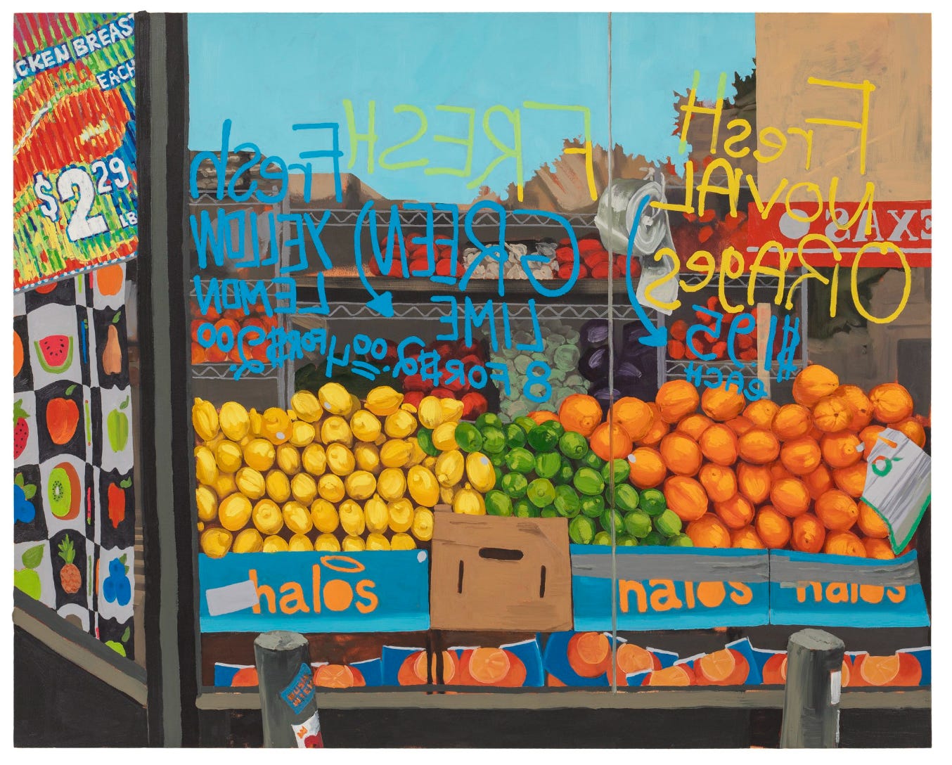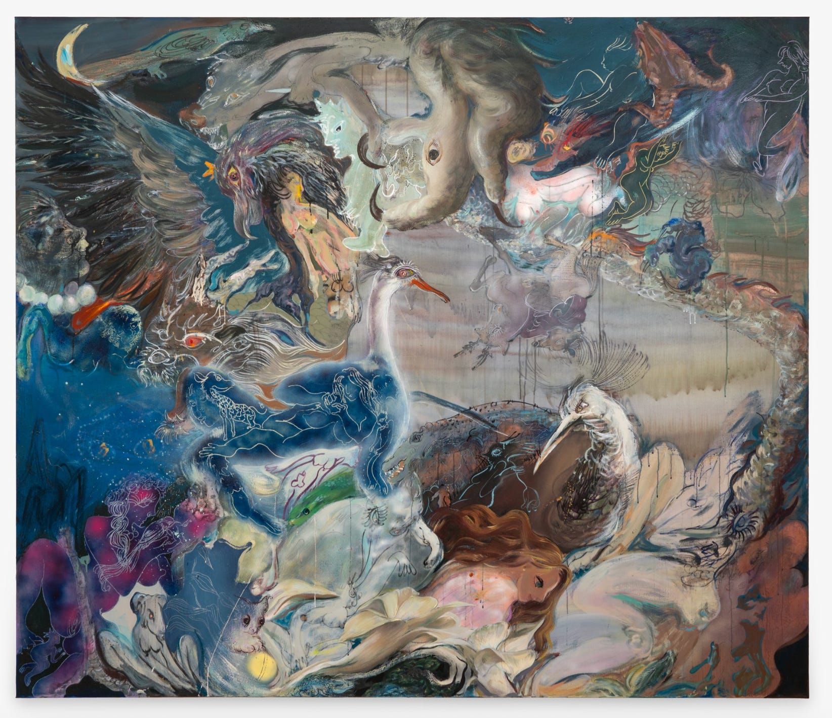 Oil, dry pigments and ink on canvas